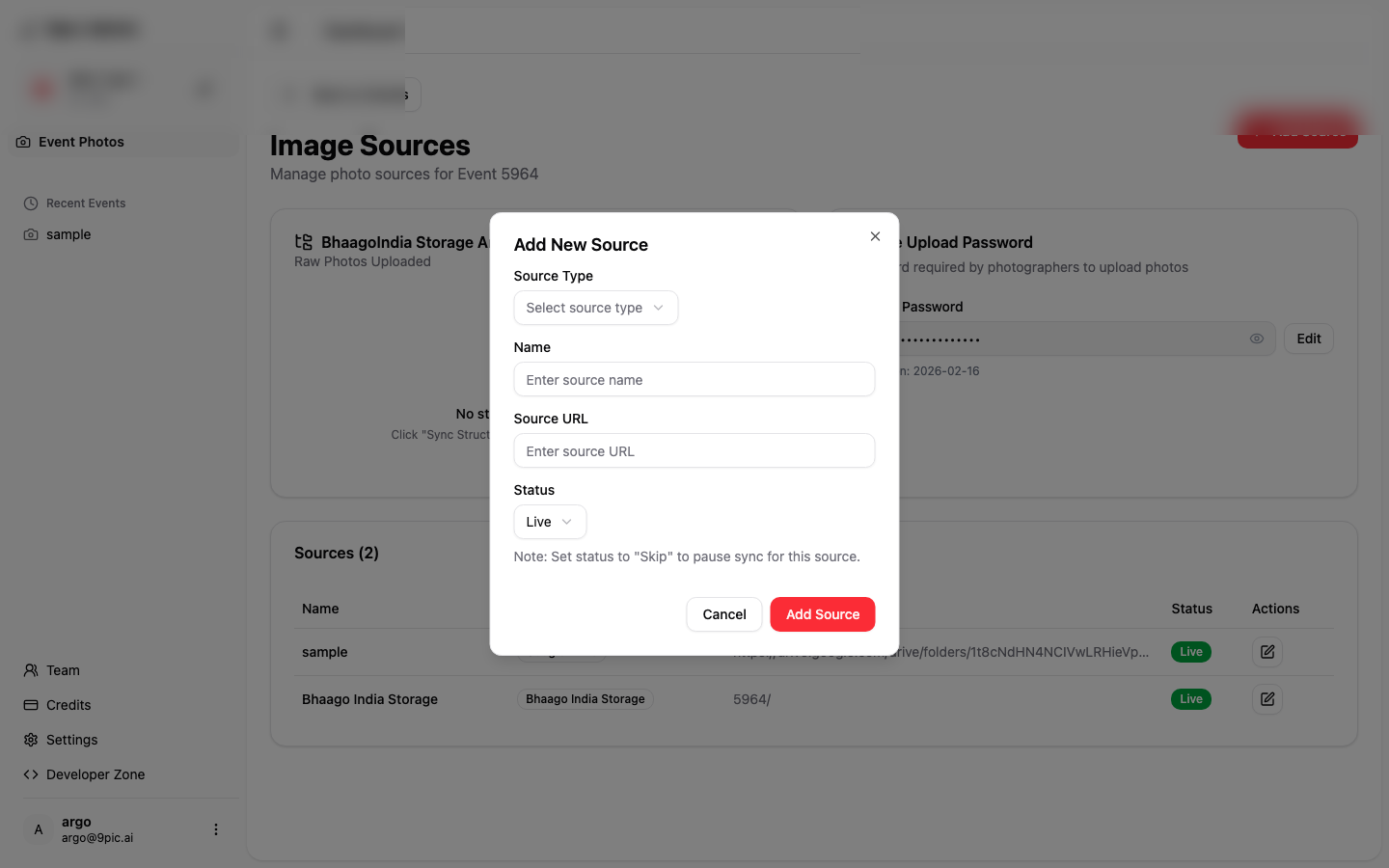 Image Sources tell 9Pic where your event photos live. After you connect a source, run Sync Images to import new photos.Before You Start